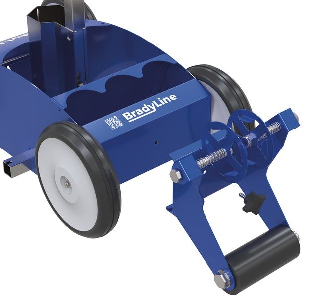 Lang haltbare und gerade Linien bei jedem Einsatz Gerade Linien dank stabiler Konstruktion und feststehenden Rädern Die Abrollvorrichtung für die Markierungsbänder ganz einfach an das BradyLine Bodenmarkiergrät mit einer Schraube befestigen Einfaches Ein