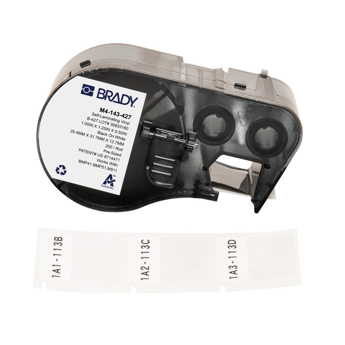 Kennzeichnen Sie Leitungen und Kabel mit den selbstlaminierenden B-427 Etiketten, die über eine transparente, selbstlaminierende Schutzschicht verfügen. Die Etiketten können mit einem robusten tragbaren Brady-Etikettendrucker fast überall gedruckt werden.