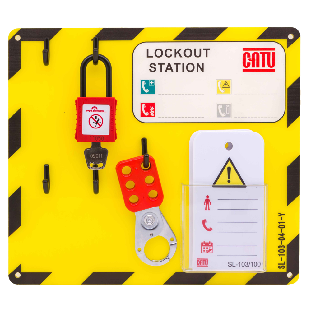 LoTo-Station mit einer Kapazität von 4 Vorhängeschlössern, 1 Bügelplatte und 1 Satz Etiketten.
