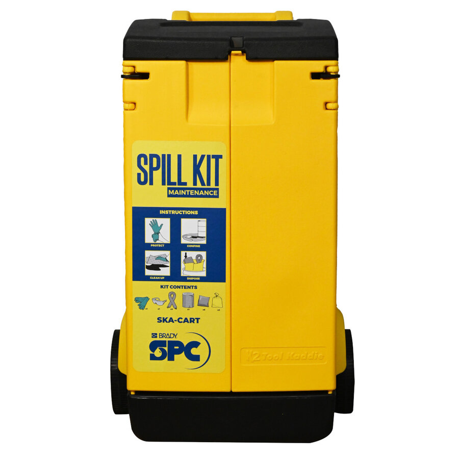 SKA-CART ist ein kompakter Notfall-Set-Wagen auf Rädern für eine schnelle Reaktion bei ausgetretenen industriellen Flüssigkeiten oder für Wartungsarbeiten überall im Werk.