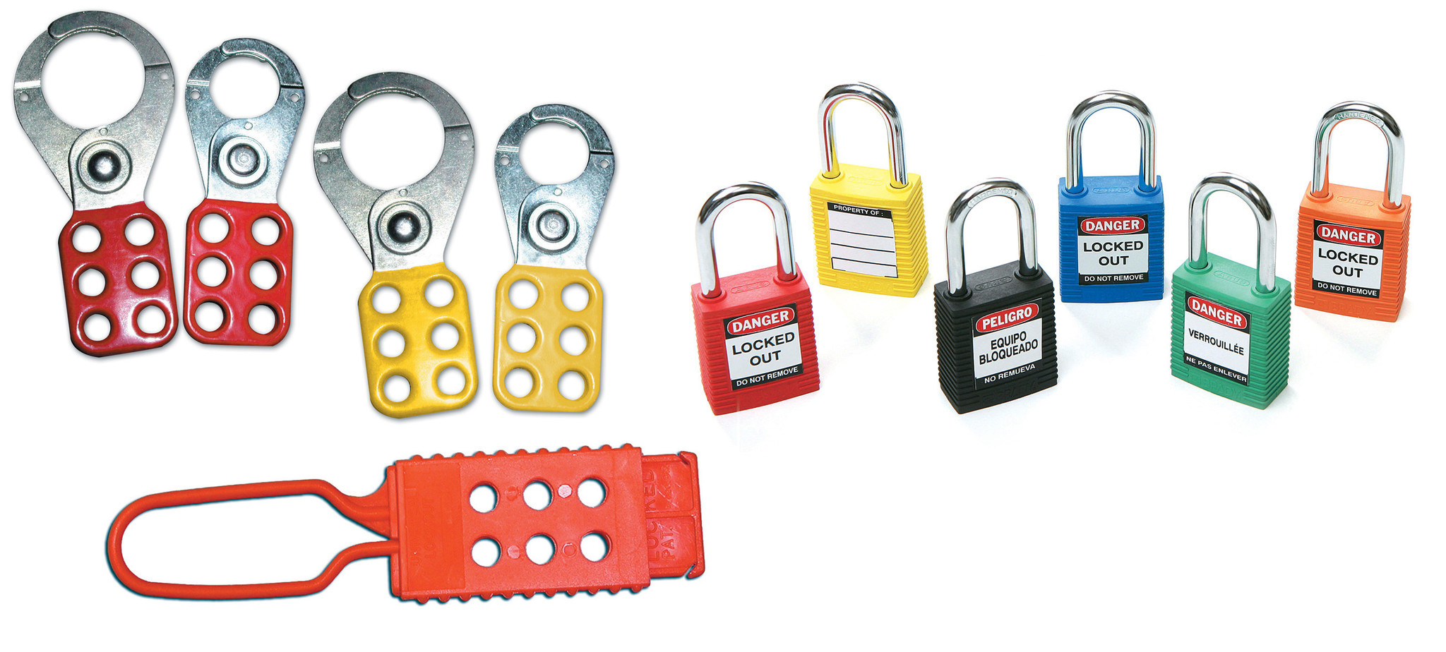 Eine kostengünstiges Lockout-Set von Brady, mit dem verschiedene Geräte und Maschinen abgesperrt werden können.